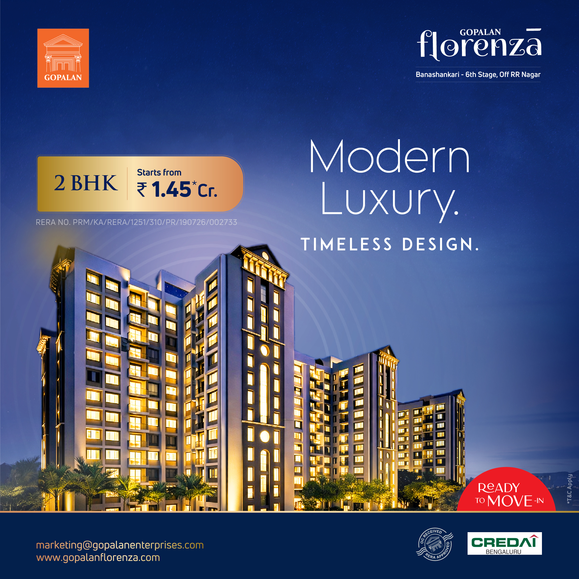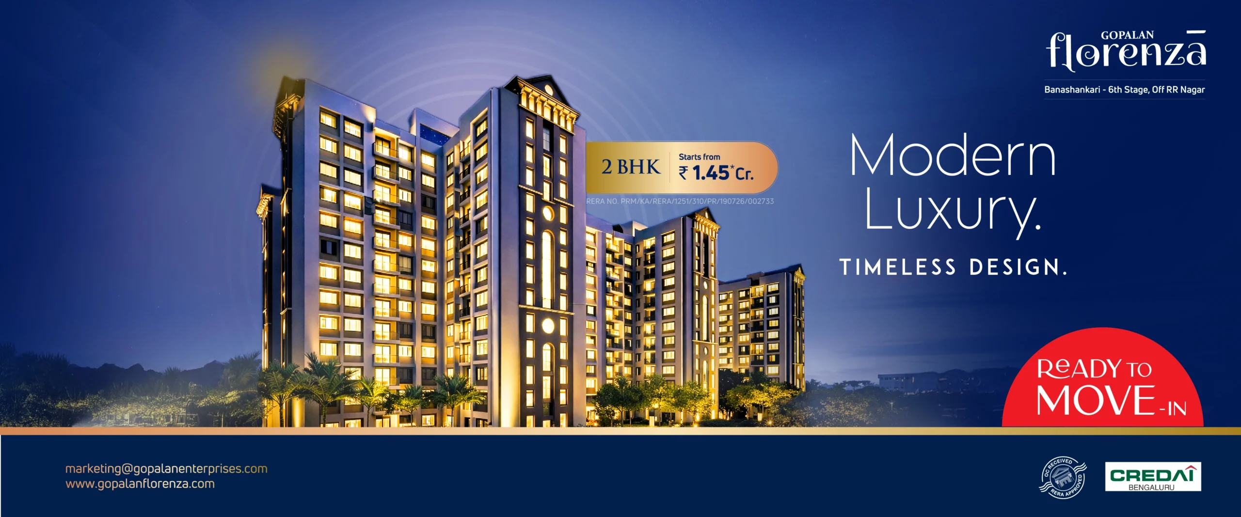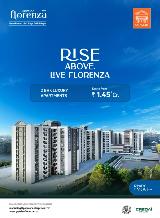 Gopalan Florenza is a premium apartment for sale in Banashankari, offering thoughtfully designed ready-to-move 2 BHK homes in Banashankari 6th Stage,